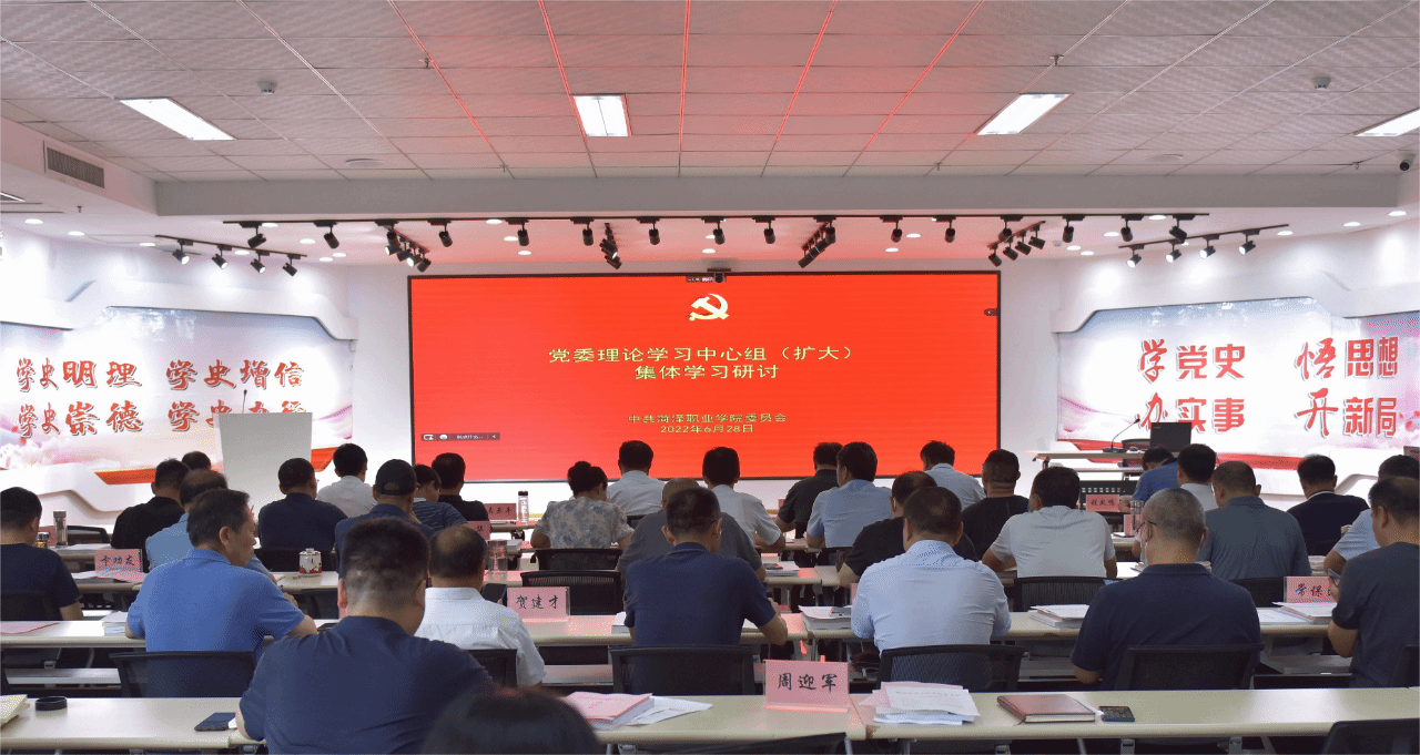 6月28日,mg4355vip检测中心党委理论学习中心组(扩大)开展集体学习研讨,深入学习贯彻山东省第十二次党代会精神,推进学院高质量、高水平发展。我院党委委员,党总支书记,处室、系部负责人参加集中学习。会议由我院党委委员、副院长陈俊启主持。