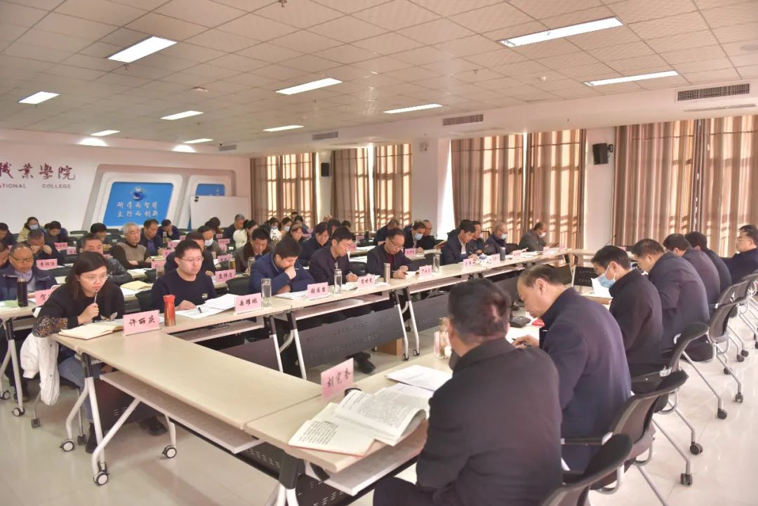 12月17日上午,mg4355vip检测中心在创业园903会议室开展党委理论学习中心组(扩大)集中学习研讨,深入学习贯彻党的十九届六中全会精神,并结合我院实际,畅谈学习体会,推动工作开展。会议由党委书记陈北国主持,党委领导班子成员,各党总支书记及所属党支部书记,各处室、系部主要负责人参加了会议。