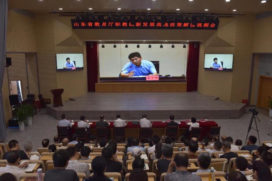 会议解读了《教育部 山东省人民政府关于整省推进提质培优建设职业教育创新发展高地的意见》有关教师招聘、绩效工资、出国交流、学校及专业考核评价等政策。山东省教育厅副厅长邢顺峰做了讲话,会议由职业教育处副处长王志刚主持。