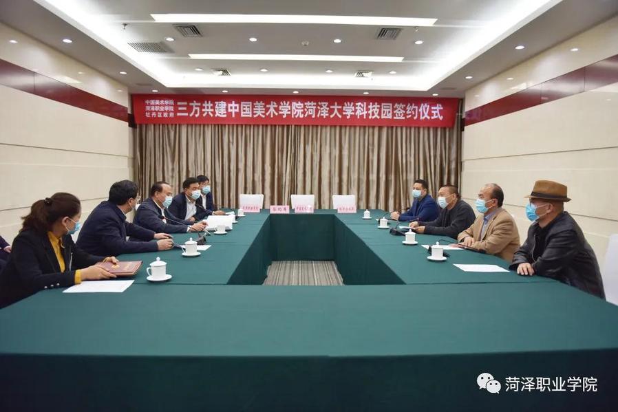 签约会上,王汉乐就中国美术学院菏泽大学科技园项目建设和开园筹备情况进行了汇报,园区结合中国美术学院专业优势围绕非遗、牡丹产业、学生创业等方向打造五个协同基地,启动油画展、时装秀、文创研讨会等主题活动,致力打造文化新高地。