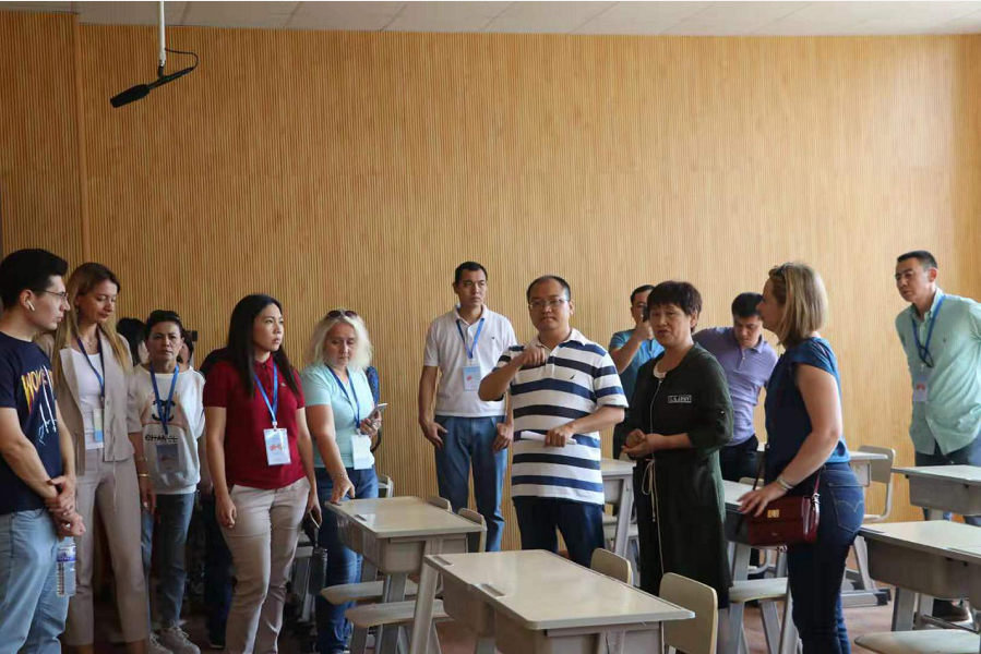 2019年9月26日上午,“2019年上合组织国家电子商务研修班”到mg4355vip检测中心考察调研,该研修班成员由来自白俄罗斯、吉尔吉斯斯坦和乌兹别克斯坦等上合组织国家的19名官员组成。此行由山东外贸职业学院信息管理系主任刘晓飞带队,菏泽市商务局副局长赵孝儒、菏泽市商务局电商科副科长林虎等陪同调研活动,旨在学习了解菏泽电子商务产业集群,参观我院电子商务高水平专业群。