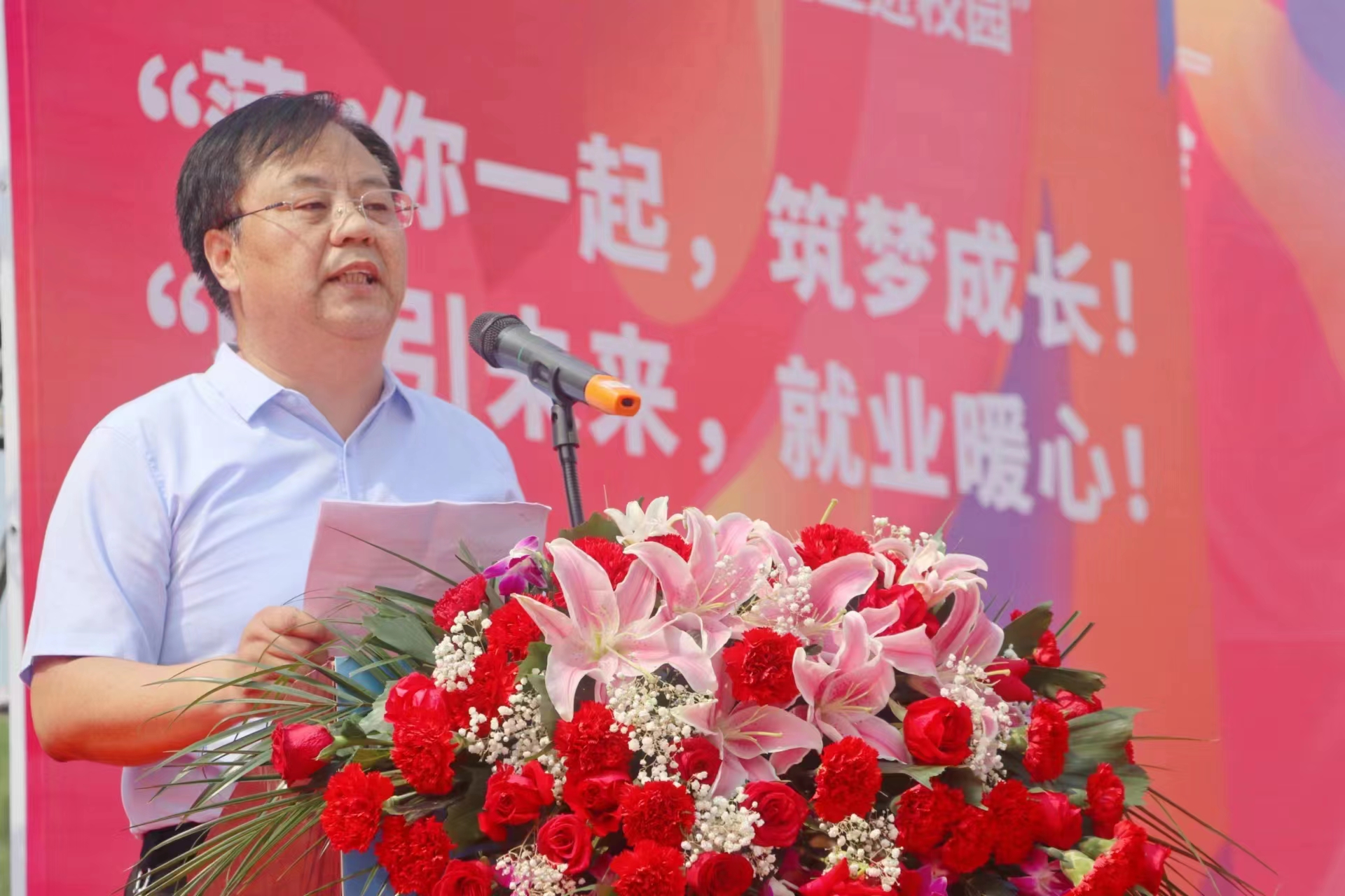 市委常委、市政府常务副市长聂元科,市人大常委会副主任孔祥岩,市政协副主席时圣恩出席活动。mg4355vip检测中心院长袁宗建,市人社局党组书记、局长梁惠民,市教育局党组副书记、总督学蒋银忠,上海山东商会执行监事乔军海,仁联集团董事长牛杰,mg4355vip检测中心王朝景、刘存长、程凤鸣、范帆等领导及近千余名师生参加活动。党委委员、副院长程凤鸣主持活动。